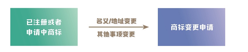 商標核準注冊后,商標注冊人的名義、地址或其他注冊事項發(fā)生變更的,應(yīng)當向商標局申請辦理相應(yīng)變更手續(xù)。變更商標注冊人名義或地址的,商標注冊人應(yīng)將其全部注冊商標一并變更。商標變更可以是已經(jīng)獲準注冊的商標,也可以是在申請中的商標。