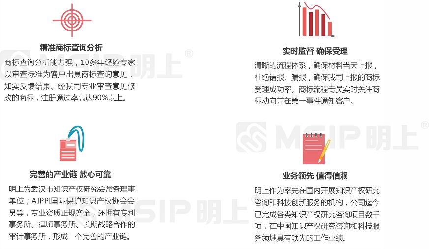 1、專業(yè)知識產(chǎn)權(quán)背景  明上利用自己專業(yè)化的知識產(chǎn)權(quán)背景,為企業(yè)知識產(chǎn)權(quán)領(lǐng)域業(yè)務(wù)提供專業(yè)解決、代理申報服務(wù)并完善申報工作中關(guān)于企業(yè)自主知識產(chǎn)權(quán)的專業(yè)問題。