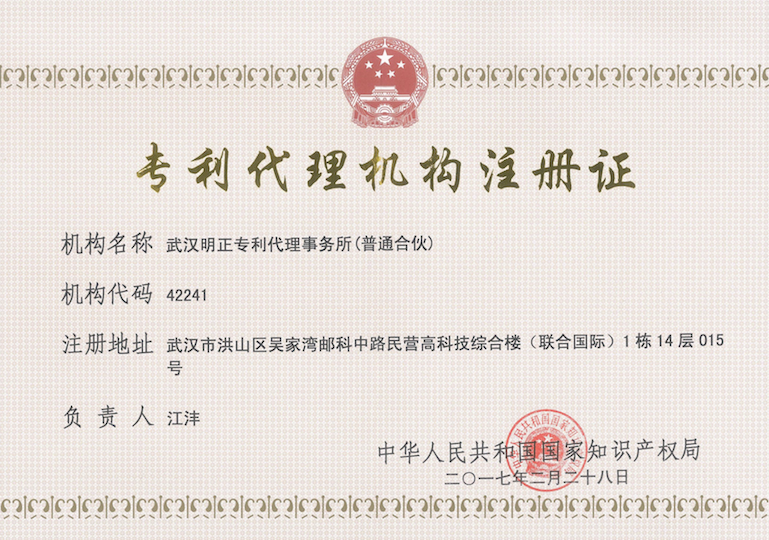 明上知識(shí)產(chǎn)權(quán)配合國(guó)家專利局的工作,于2017年2月28日,正式成立明正專利代理事務(wù)所,并且已在國(guó)家專利局備案,取得專利代理機(jī)構(gòu)注冊(cè)證。旨在培育一批專業(yè)化、國(guó)際化的知識(shí)產(chǎn)權(quán)服務(wù)者,為市場(chǎng)主體和創(chuàng)新主體的知識(shí)產(chǎn)權(quán)發(fā)展提供有效支撐和保障,也為明上的新老客戶提供更專業(yè)更優(yōu)質(zhì)的專利代理服務(wù)!