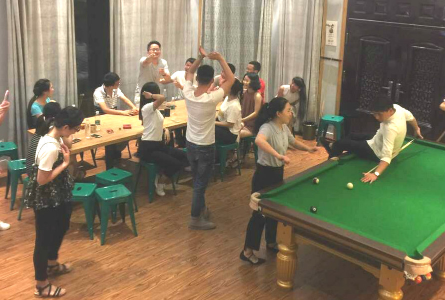 大家酒足飯飽,但都意猶未盡,分組玩起了各種游戲,游戲節(jié)目讓大家神采飛揚(yáng),笑的前翻后仰。