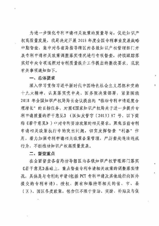 附:專利申請相關(guān)政策專項(xiàng)督查工作的通知