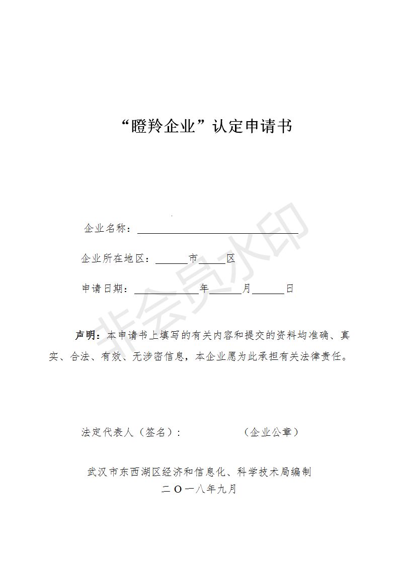 1. 臨空港開發(fā)區(qū)(東西湖區(qū))瞪羚企業(yè)認(rèn)定申請書;