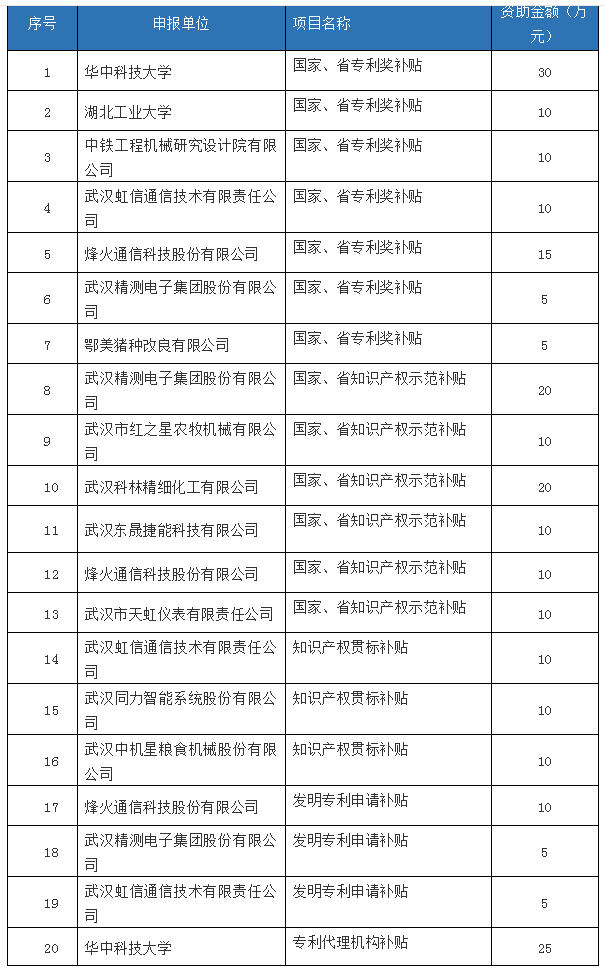 附表:洪山區(qū)2018年度知識產(chǎn)權(quán)專項資金匯總表