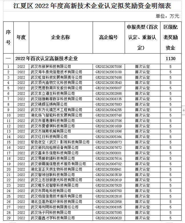 【公示】區(qū)科經(jīng)局關于江夏區(qū)2022年度 高新技術企業(yè)認定區(qū)級配套獎勵資金的公示