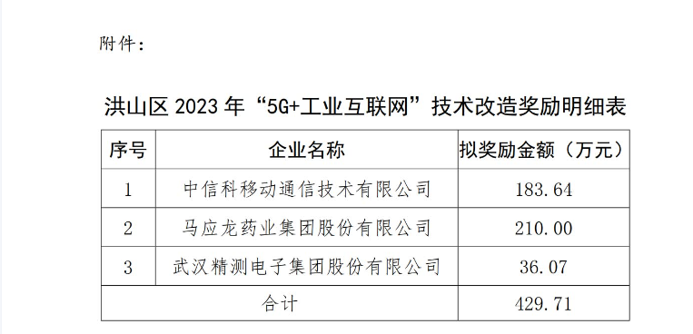 【公示】關(guān)于洪山區(qū)2023年“5G+工業(yè)互聯(lián)網(wǎng)”試點示范項目獎勵的公示